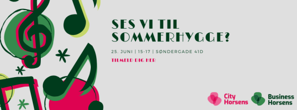 Dette års sommerhygge afholdes i gården hos City Horsens, og vi håber på godt vejr, når Peter Salat ruller grillen frem.